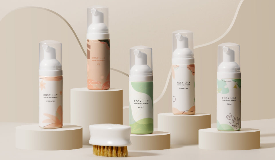 ROSY LILY は、水で洗い流さず拭き取るだけであなたの靴を綺麗にする、女性の為のプレミアムシューズシャンプーです。だから、驚くほど手軽でカンタンに洗う事ができます。